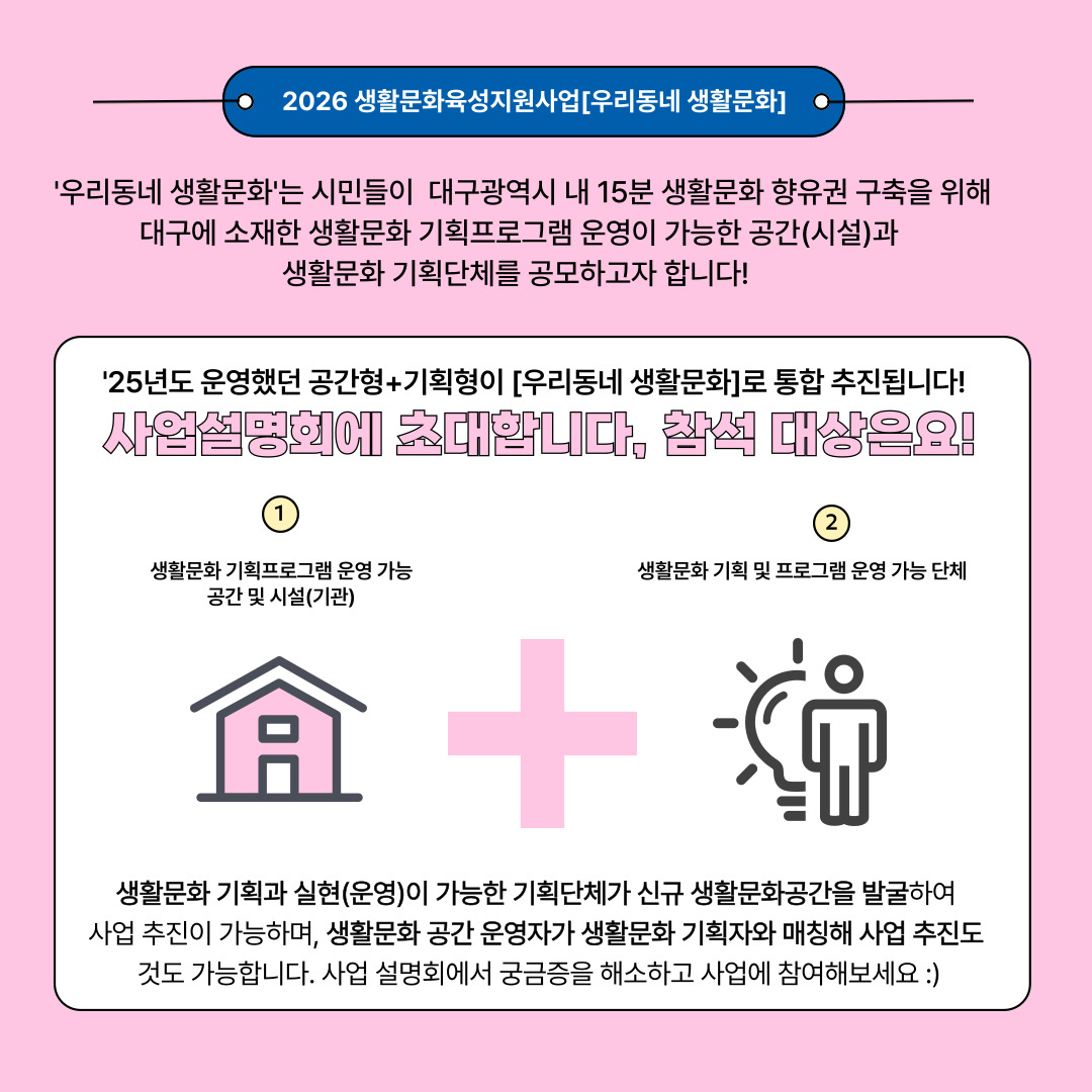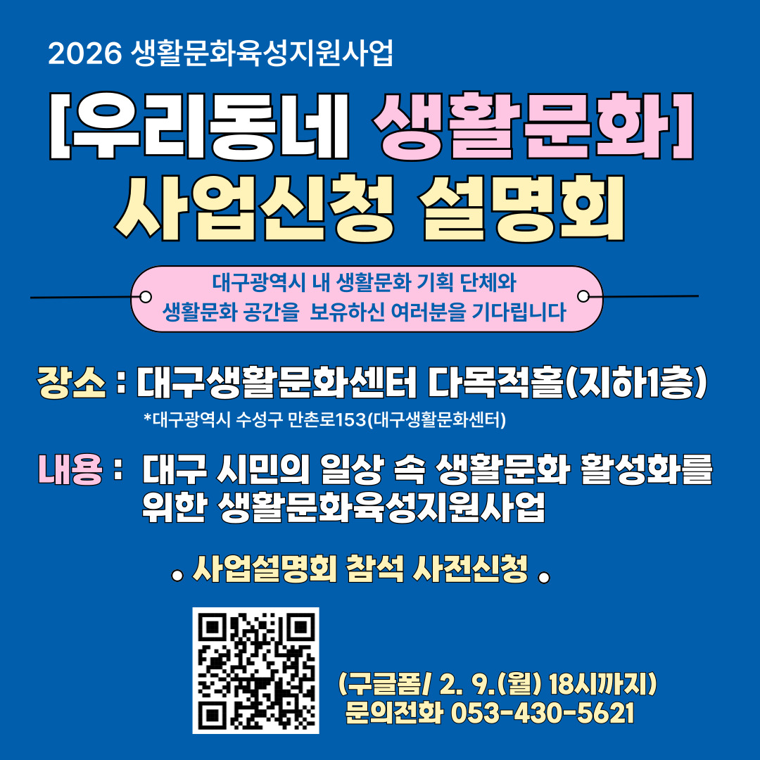 문의 : 생활문화팀 사업 담당자 053-430-5621