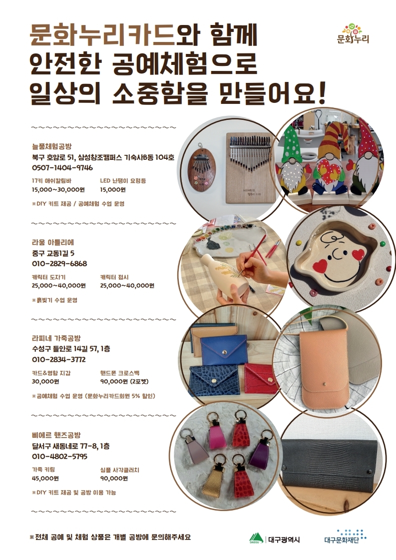 문화누리카드와 함께 안전한 여행 및 공예체험으로 일상의 소중함을 만들어요!