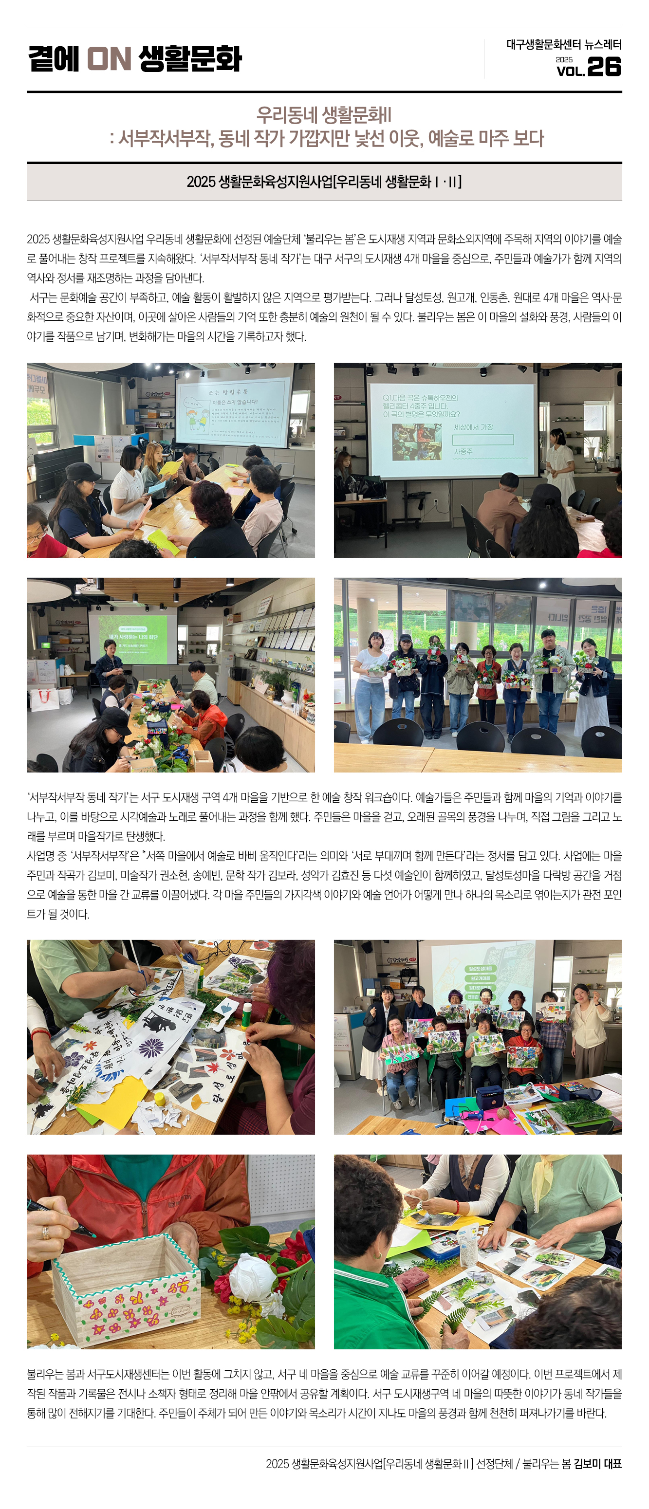 [Vol 27] 생활문화 프렌즈 뉴스 _ 집 앞에서 즐기는 생활문화, 2025 생활문화육성지원사업 [우리동네 생활문화] 성과 톺아보기